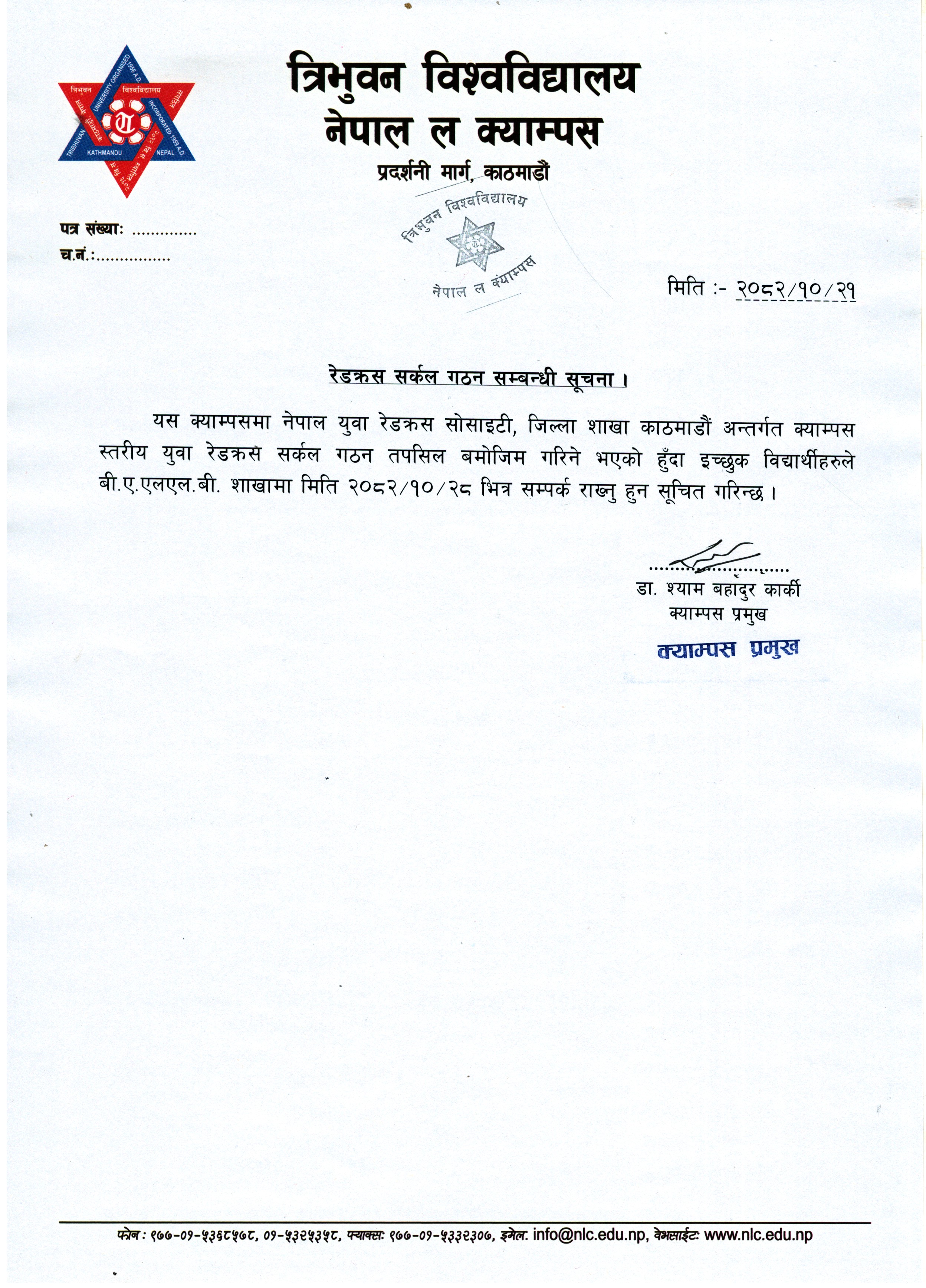 रेडक्रस सर्कल गठन सम्बन्धी सूचना ।