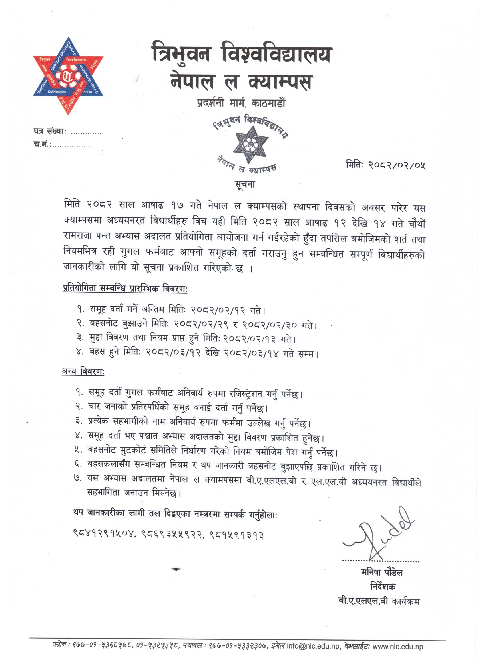 चौंथो राजाराम पन्त अभ्यास अदालत प्रतियोगिता सम्बन्धी सूचना