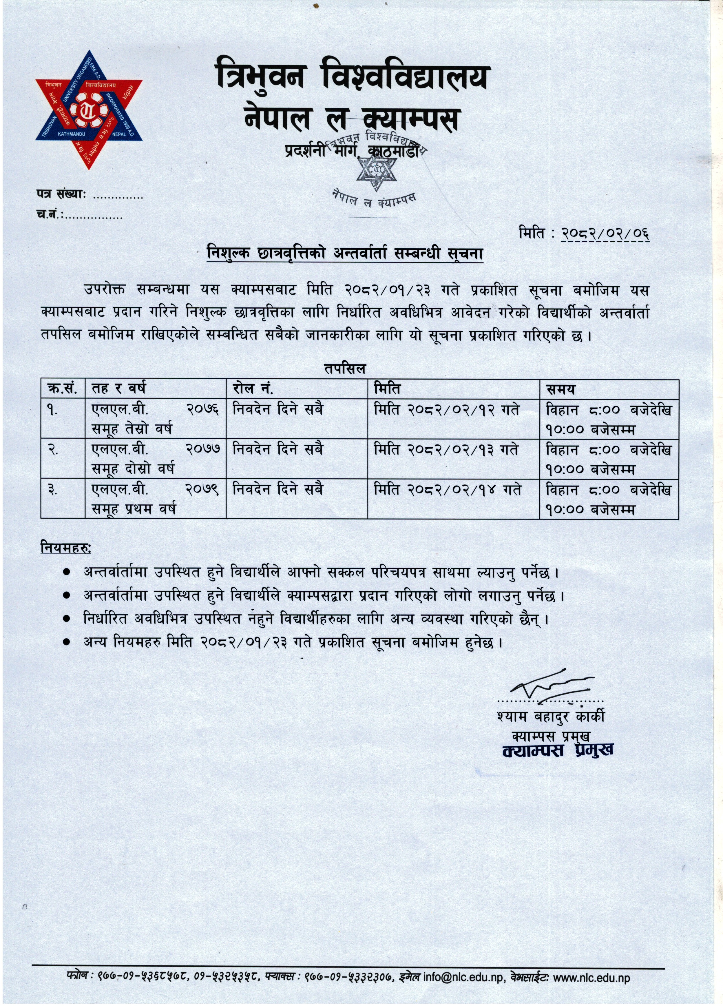 निशुल्क छात्रवृत्तिको अन्तर्वार्ता सम्बन्धी सूचना
